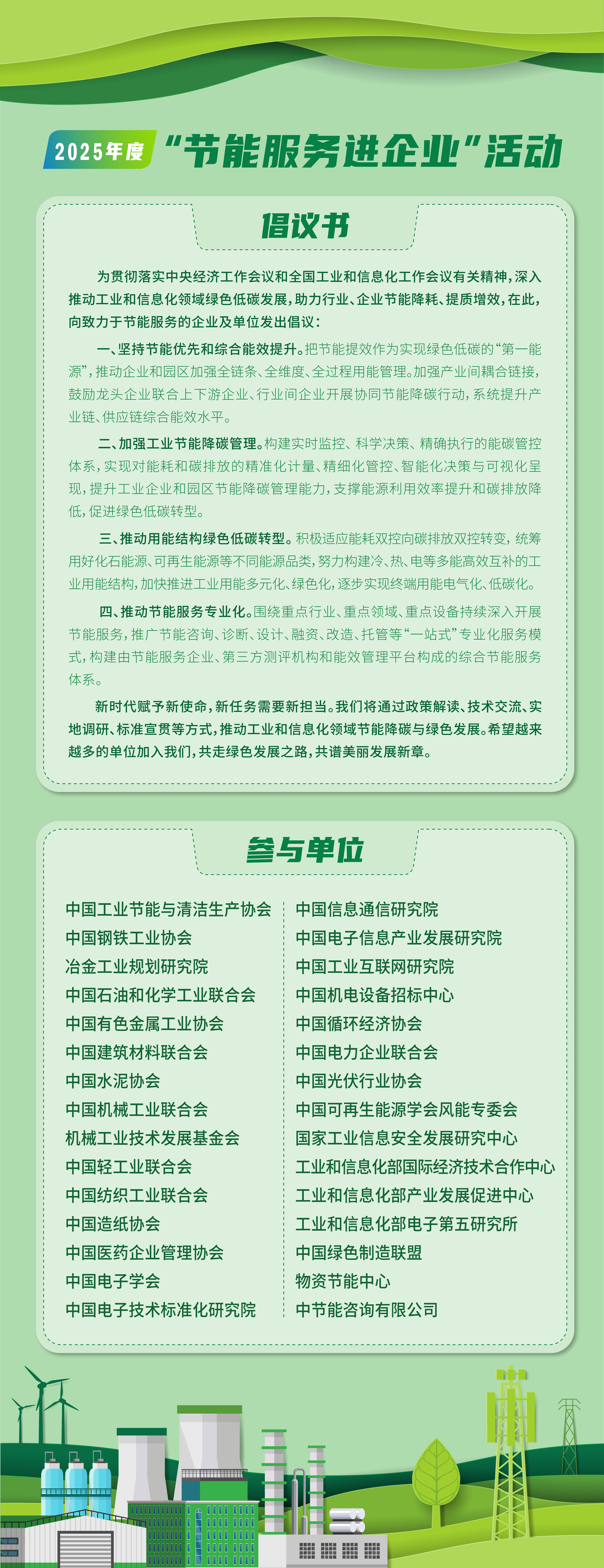 会上,节能与综合利用司有关负责同志介绍了工业节能降碳面临的新形势新要求,系统部署了2025年度“节能服务进企业”活动重点工作。30家参与单位共同发布2025年度“节能服务进企业”活动倡议书。